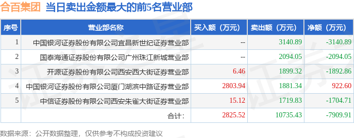证券之星消息,沪深交易所2025年8月14日公布的交易公开信息显示,合百集团(000417)因日跌幅偏离值达到7%的前5只证券登上龙虎榜。此次是近5个交易日内第1次上榜。